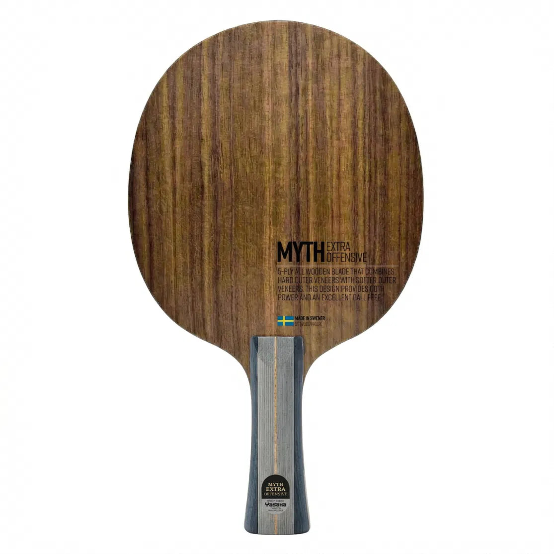 Myth Extra Offensive is engineered for players who focus on powerful topspin play from close to mid-distance. Its all-wood construction, featuring a hard walnut outer veneer, delivers excellent feedback and stability, making it ideal for aggressive looping and fast counter-attacks. With its balanced blend of speed and control and a slightly harder feel than most all-wood blades, it has become a popular choice among offensive players worldwide.